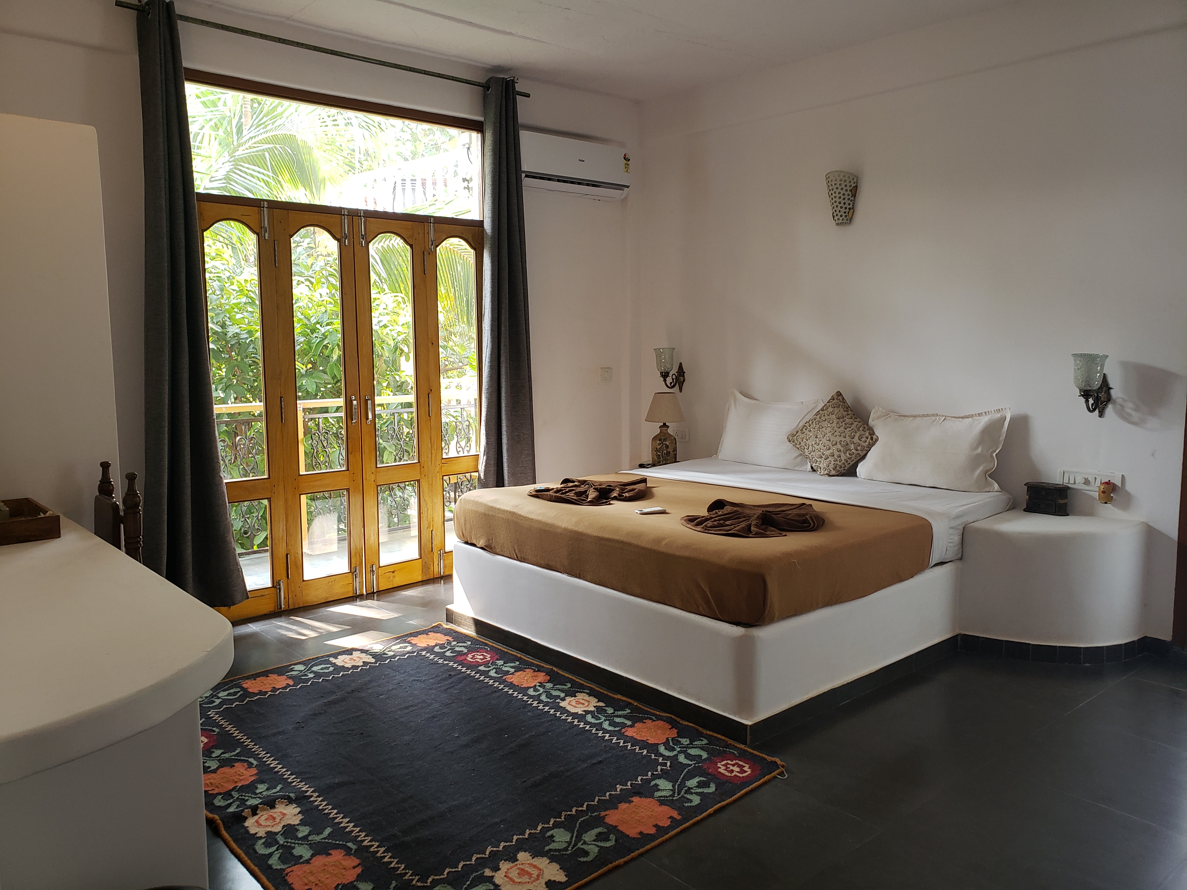 You will be staying at Nalanda Resort a stunning beachfront property located a few meters away from the sandy Mandrem Beach in North Goa. This is a beautiful place where you can just sit back and watch the sun set or take a walk along the beach. This space is designed for relaxation and to immerse yourself in the serene beauty of Goa. It’s also located in a vibrant community for you to explore, shop and discover the local culture.